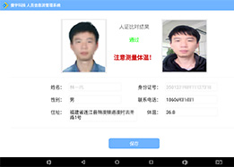方案背景 受新冠肺炎疫情影響延長春節(jié)假期后,復(fù)工大潮來臨,疫情防治進(jìn)入關(guān)鍵期,全國多地實(shí)施封閉式管理,嚴(yán)格管控人員出入,采取全員登記制度,但目前大部分地區(qū)仍使用人工登記,手寫登記項(xiàng)目繁多,如姓名、電話、體溫、地址等,同時頻繁交叉接觸寫字筆會增加感染風(fēng)險,人工識別身份信息準(zhǔn)確率較低,影響疫情防控工作。 方案介紹 捷宇科技依托多年在圖像視覺與智能交互領(lǐng)域上的技術(shù)積累與優(yōu)勢,針對目前嚴(yán)峻的疫情防控形勢,推出《捷宇科技防疫登記信息管理解決方案》。 該方案由前端采集設(shè)備+后端管理系統(tǒng)組成,通過人臉識別、身份證識別、指紋采集等功能,1秒即可完成核驗(yàn)身份信息,信息采集準(zhǔn)確率高, 核驗(yàn)全程無接觸自動化 ,降低了交叉感染的風(fēng)險。 結(jié)合第三方測溫儀,支持錄入體溫信息,管理系統(tǒng)自動同步保存人員信息,免去打字錄入,同時可保存每日核驗(yàn)人數(shù),可排查人員是否來自疫情嚴(yán)重地區(qū),若出現(xiàn)體溫異常人員便于查找,減輕一線防疫工作人員的壓力。 方案優(yōu)勢 無接觸 身份核驗(yàn)自動化,全程無接觸,降低感染風(fēng)險 好管理 支持人員登記信息批量導(dǎo)出與查找,減輕防疫人員工作壓力 多模態(tài) 設(shè)備類型豐富,針對不同場景,多種識別模式可選 高精準(zhǔn) 核驗(yàn)軟件基于深度學(xué)習(xí)開發(fā),準(zhǔn)確率超過99.5% 推薦產(chǎn)品 DC13雙目活體檢測模組 配置300萬寬動態(tài)+130萬紅外雙目活體檢測攝像頭 N1330雙目攝像頭 配置300萬寬動態(tài)+130萬紅外雙目活體檢測攝像頭  支持吸附式、夾持式、三角架式 X2DC雙目身份核驗(yàn)儀 配置雙目活體檢測攝像頭  采用USB接口,即插即用 X3DC雙目身份核驗(yàn)終端 配置雙目活體檢測攝像頭、身份證模塊、指紋模塊 Z10P人證核驗(yàn)終端 配置身份證模塊、指紋模塊、單/雙目攝像頭等 Z10S人證核驗(yàn)終端 配置身份證模塊、指紋模塊、單/雙目攝像頭等 Z20多模塊核驗(yàn)終端 配置單/雙目攝像頭、雙屏異顯異觸、身份證模塊、指紋模塊、二維碼模塊等 M70移動式人證核驗(yàn)終端 配置單/雙目攝像頭、身份證模塊、指紋模塊、電池等